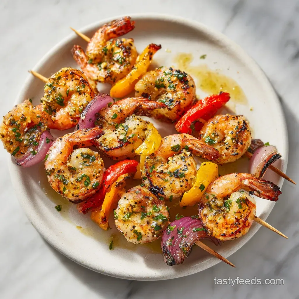 Garlic Butter Grilled Shrimp Skewers: Tender and Charred