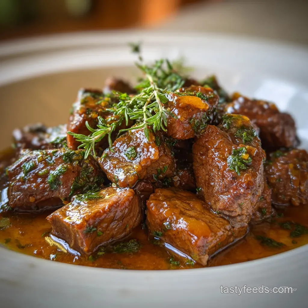 - Flavor/Texture Hook: Succulent, melt in-your mouth beef with a savory, wine infused glaze